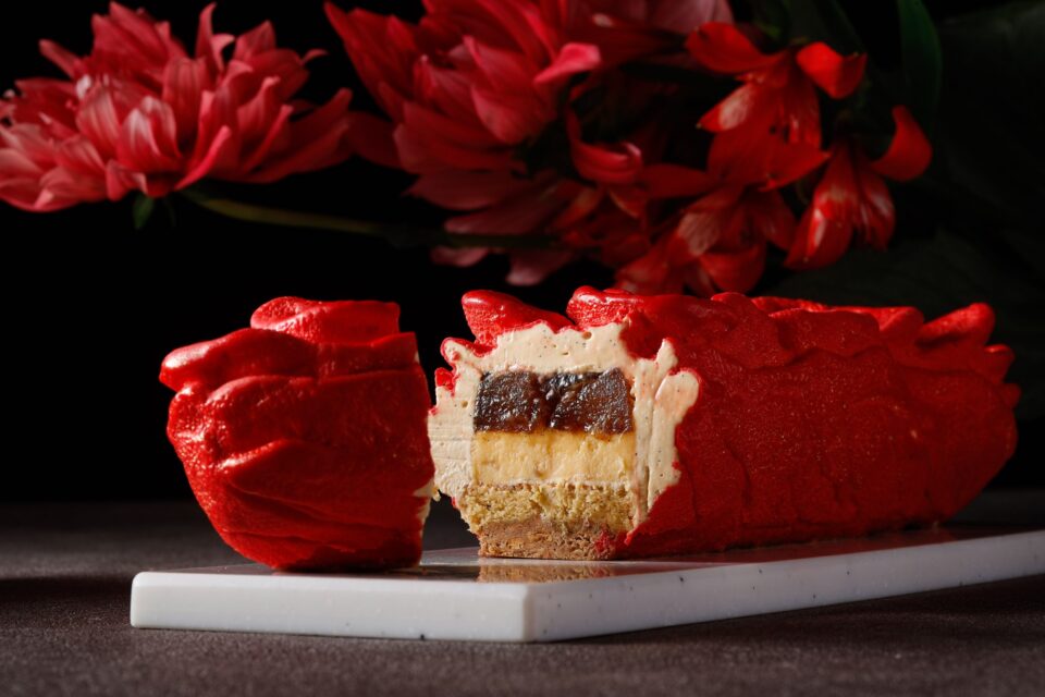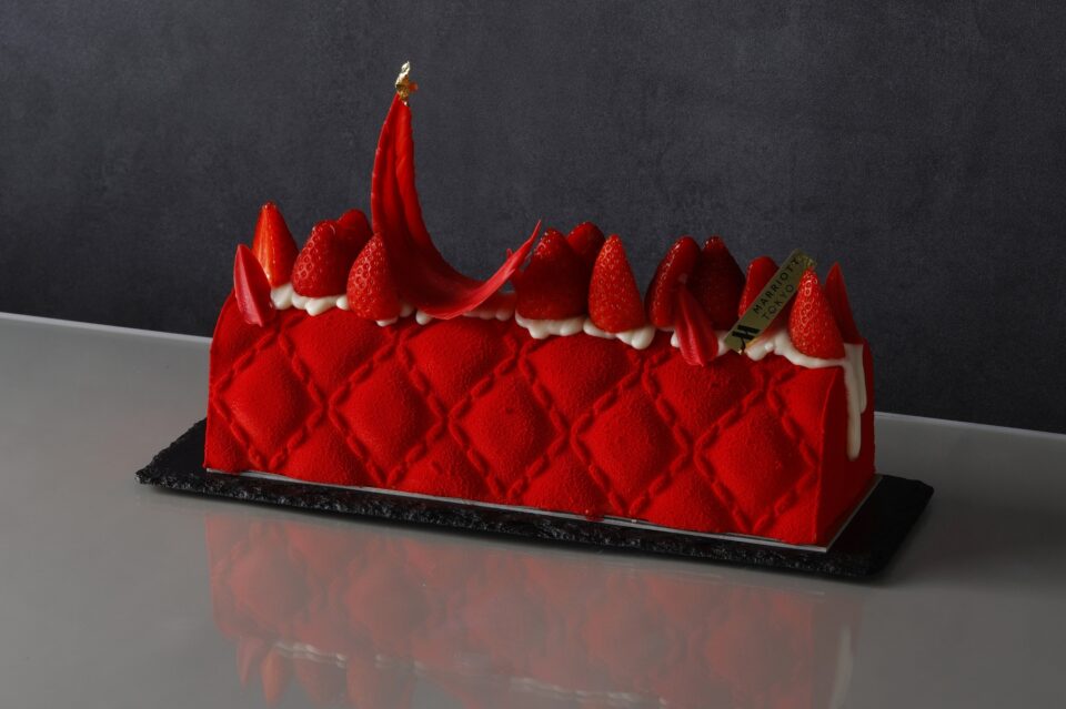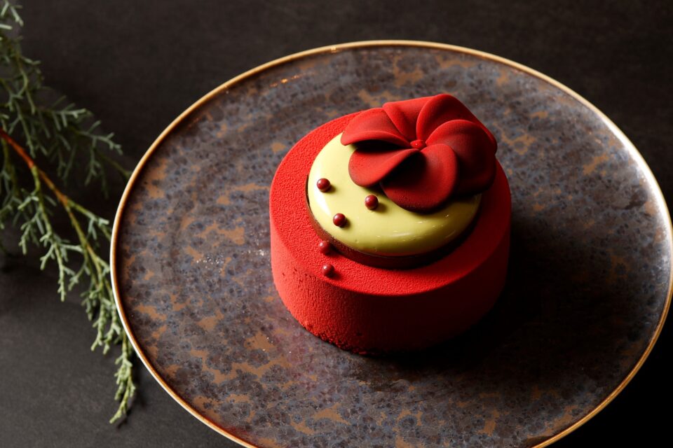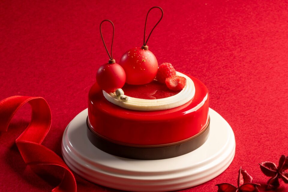 今年のクリスマスのテーマ「Santa’s Workshop」のワクワク感から生まれた、赤のワントーンをコンセプトにしたケーキ。シェフたちがブレインストーミングを重ねて生み出した、遊び心と大人の味わいが共存する一品です。