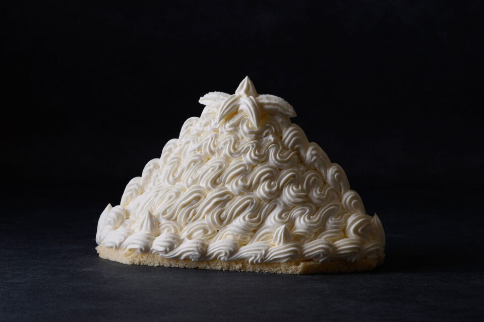 2025年のホワイトコレクションは、ムースやクリームのなめらかな口どけを基調とし、複雑なテクスチャーや洗練されたアロマを繊細に忍ばせています。目には見えないパティシエの技巧が、ロマンチックな雪の情景を五感で描き出し単なる白ではない「奥行きのある白」を追求しています。