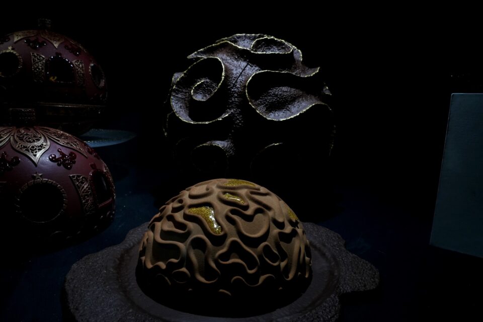 会場奥の「Maison du Père Noël(サンタクロースの家)」 から続く「BÛCHE Ô MA BÛCHE」に並んだ作品たちは、どれも「ケーキ」という枠を超えた、シェフの哲学と技術の結晶です。