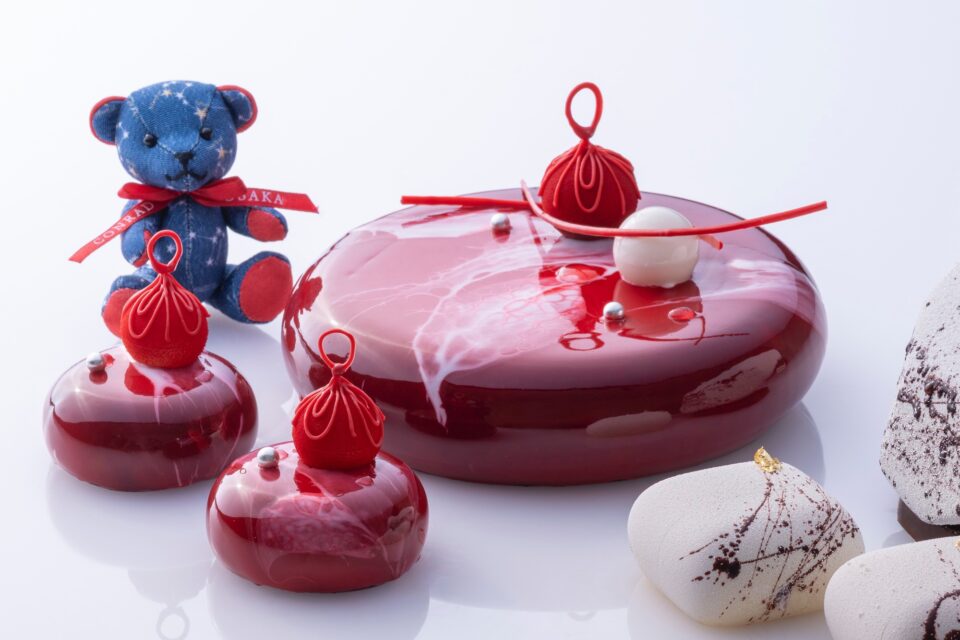 コンラッド大阪からは、ペストリーシェフの児島 大地氏が手掛ける、艶めく大理石のようなミラーケーキ「オーナメント・フレーズ」が登場。このケーキは、単なるスイーツに留まらない、ホテルのブランドコンセプトと連動した深い物語性を持っています。