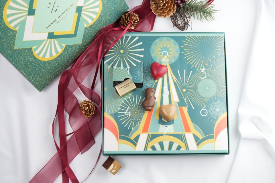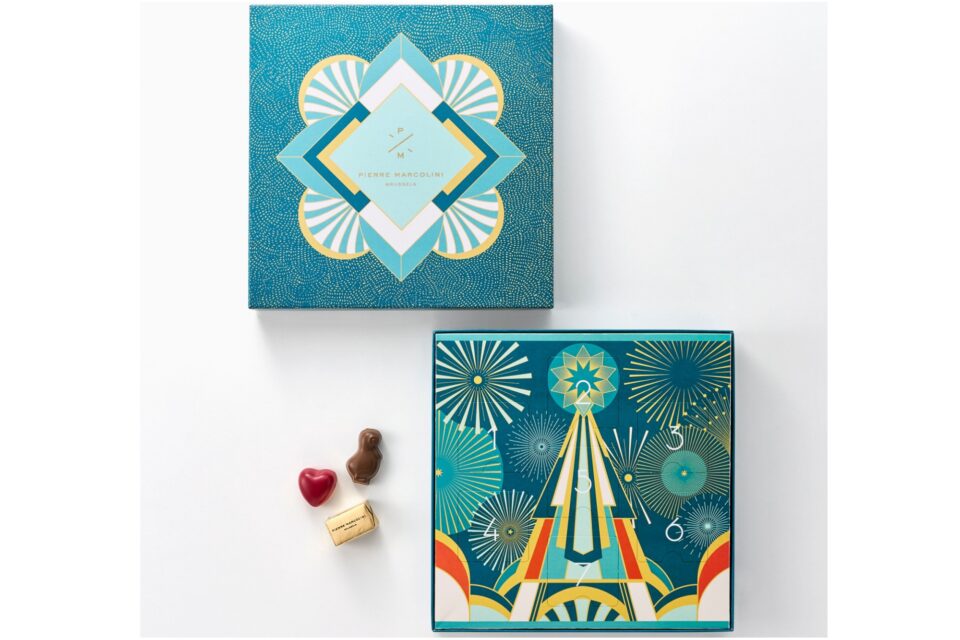アール・デコのデザインを施したボックスに、ピエール・マルコリーニの人気のチョコレートが詰め合わされています。クリスマスまでの7日間、ひとつずつ小窓を開けながらカウントダウンを楽しむという、贅沢な遊び心を自宅で堪能できます。