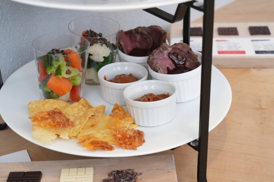 このアフタヌーンティーの真髄は、カカオの持つ驚くべき個性と多様性を、テクスチャーの異なるスイーツとセイボリーで体験できる「カカオの探求の旅」です。