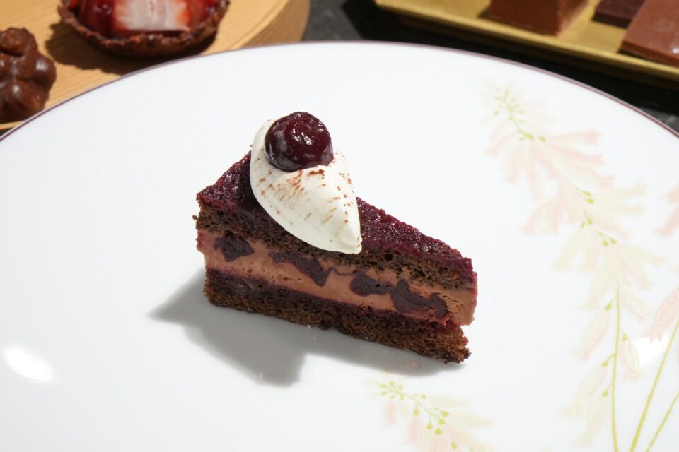 クラシックなアルザス地方の伝統的なショコラケーキを、デュカス流に洗練させた一品。“黒い森”の名の通り、しっとりとした濃厚なショコラ生地に、グリオットチェリーを合わせた芳醇なショコラクリームが重なります。トップのチョコレートを合わせたシャンティクリームは甘さが控えめに絞られており、この軽やかなクリームが、チェリーの鮮やかな酸味と、ショコラの持つ重厚な香りを引き立てる絶妙な緩衝材の役割を果たします。