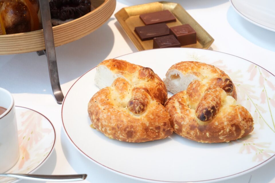 チーズ風味のふんわりとしたプレッツェルは、ショコラが続く構成の中で、味覚をリセットする絶妙なセイボリー(塩気)の役割を果たします。
