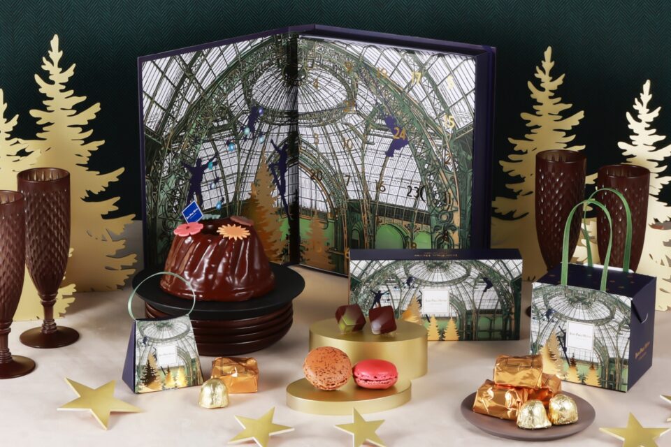 毎年発表されるノエルコレクションは、伝統的なパリの格式を保ちつつ、遊び心に満ちています。2025年のテーマは<夢、そしてカカオ>を掲げ、エヴァン氏にとって「夢の街」であるパリの象徴、美しいガラス屋根が印象的な「グラン・パレ」をモチーフにしたコレクションを展開。