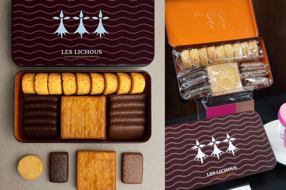ブルターニュの焼き菓子3種類を詰め合わせた、ブランドの魂を感じるスペシャリティ缶。一口サイズでサクサク食感が病みつきになる「サブレブルトン《タチジャンヌ》」、分厚い生地の間にほんのり塩味の効いた特製キャラメルを挟んだ「ガトーブルトンキャラメル」、そしてビターとミルクのチョコをコーティングした「リシュース」の3種を楽しめます。