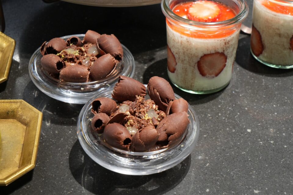 ここで提供される「ル・グテ」は、エグゼクティブ・シェフ、パトリック・パイエー氏が紡ぐ、春のカカオの「多重奏」。3種類のデザートは、春のデセールのミニバージョンとして、その真髄を余すことなく体験させてくれます。
