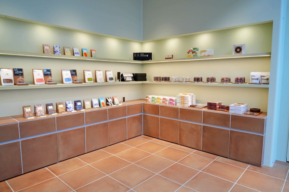 仙川の街の空気感に合わせ、心地よくやわらかな雰囲気を目指した設計となっています。店内では生菓子から焼き菓子、板チョコレートまで幅広いラインナップを揃え、大切な人へのギフトをじっくりと選ぶのにふさわしい、穏やかな時間が流れています。