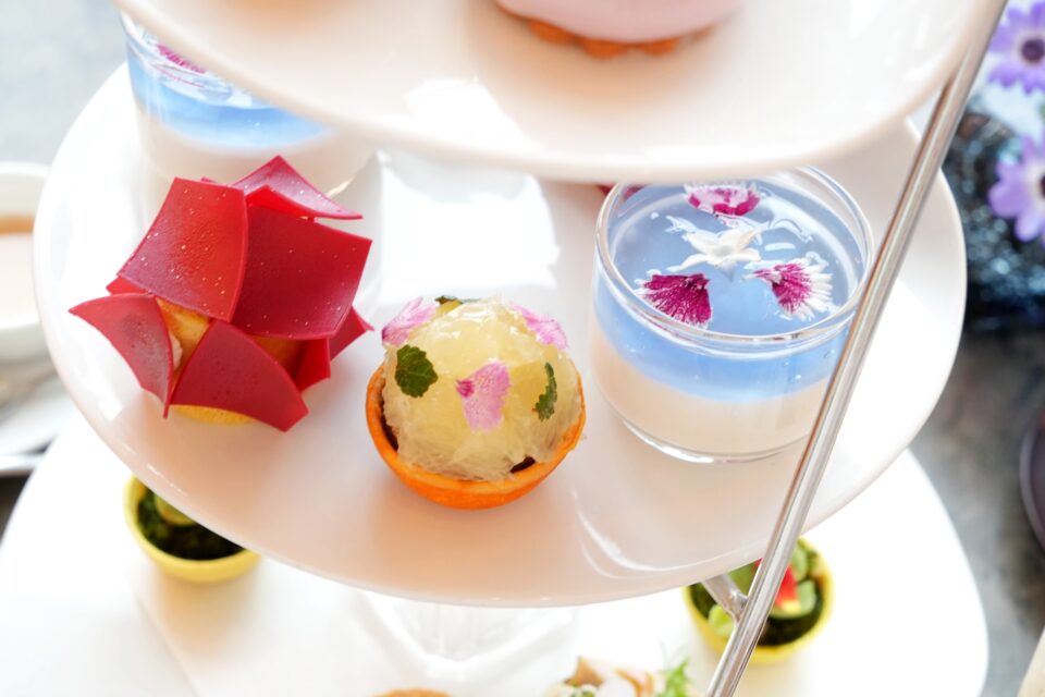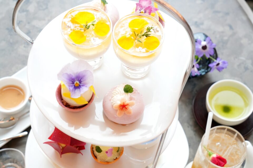 今回の「スプリングブロッサム アフタヌーンティー」を象徴するのは、単なる視覚的な華やかさではなく、一皿ごとに緻密に設計された「香りのレイヤード」と、食べる側を飽きさせない「テクスチャーの対比」にあります。