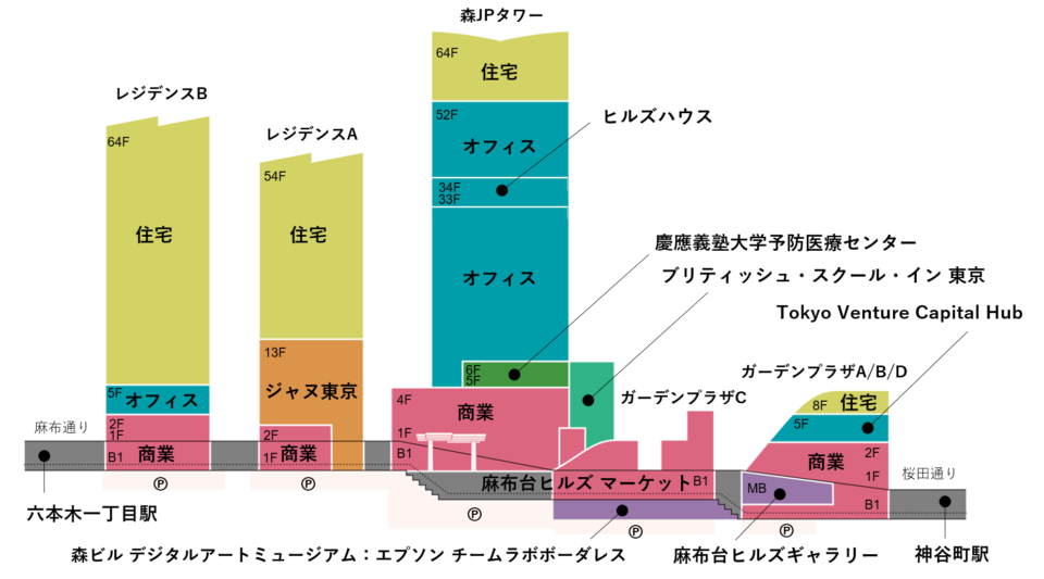麻布台ヒルズ「レジデンスA」タワー。先見的なビジョンで知られるペリ・クラーク・アンド・パートナーズが設計したこの空間に、ジャヌ東京はある。